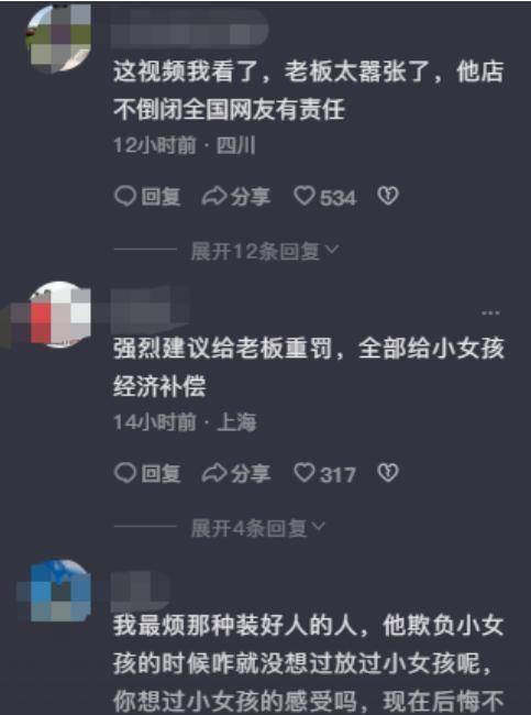 网络上的言论全都是批评这名店东的,以为这名店东尖嘴薄舌,这样对待一名小孩子,即便小女子把口袋都掏给他看了,仍旧坚决自己的主意,就以为是小女子偷东西了,有的网友说他是“偏执型品格”,自己说的有必要是对的。