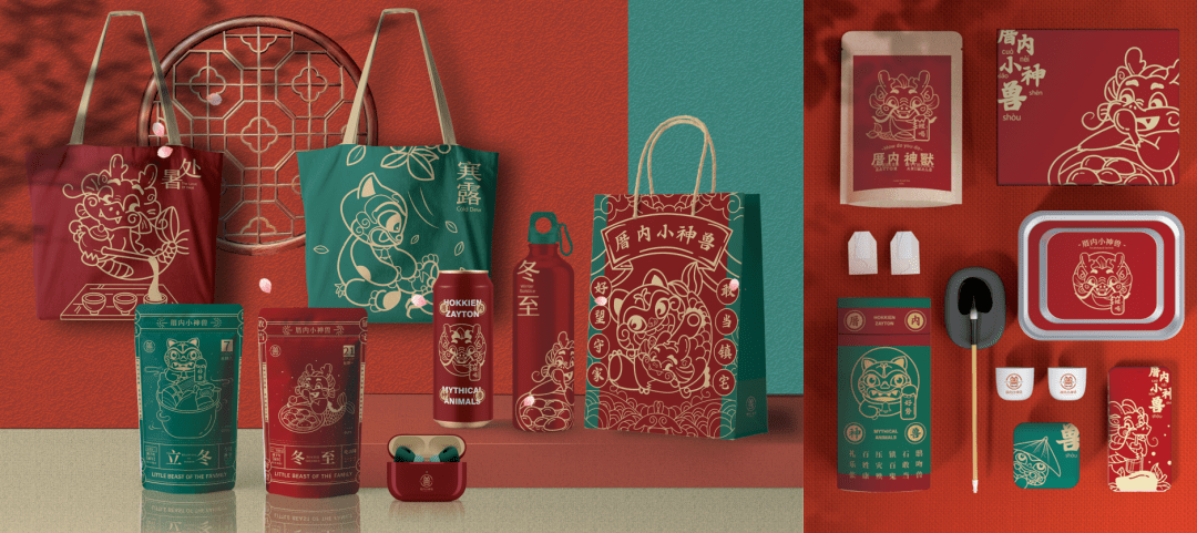 作品基于闽南古厝文化、神兽文化、二十四节气文化,融合了现代人的生活小习惯展开创作,这些文化都来源于中华闽南古老的文化,因此在文化素材上选用的是传统;在设计形式上,用了现代平面构成、现代工艺、现代印刷、现代板绘等多种形式,因此在形式上是现代创新的。作品在文化上选用传统元素,采用现代设计的形式加以创新。