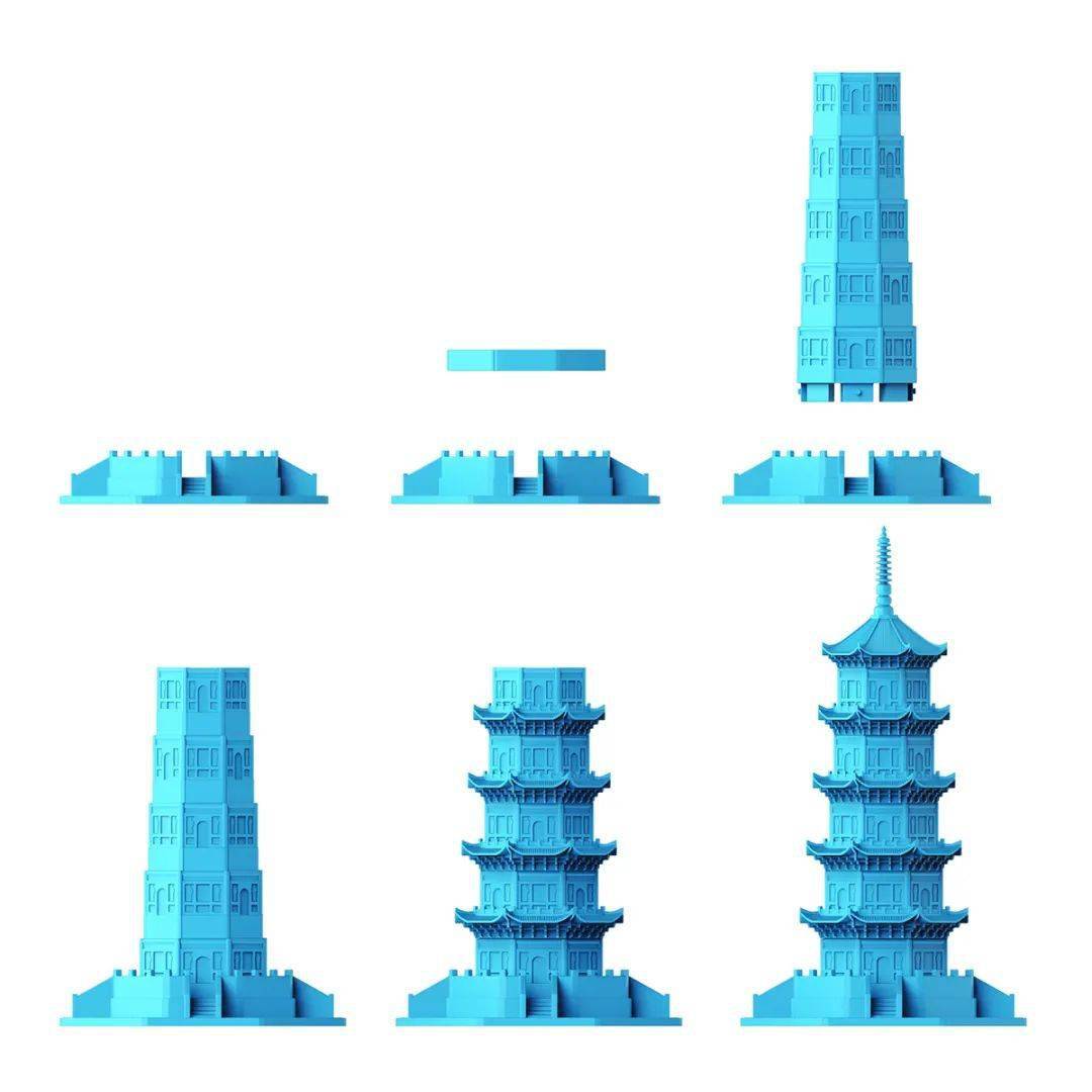 作品最终的呈现是一个古建筑模型,建筑本身就是当时历史背景和文化的一个缩影或时代的标本,当时的思想、审美、技艺的一个反映,通过建筑本身能引导你了解历史,了解过去,甚至了解当时的文化,它是个引子,体现的是传统。通过打散建筑模型,拼成泉州字样,与地域产生了联系,像名片一样印在了建筑上。增加了趣味性,又增加了产品的温度感,这是体现了产品的新。