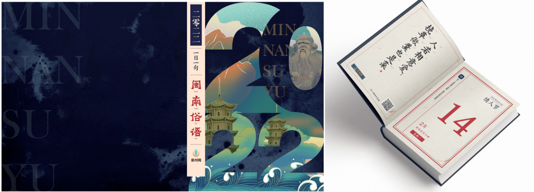 “一日一句闽南俗语”365页台历是一件将民间传统文化用新载体展现的文创作品。闽南语起源于泉州,是古汉语的活化石。台历中的闽南俗语以闽南语正字记录,标注读音音标、含义解释,台历每页附二维码,可扫描收听当页闽南俗语读音和讲解音频,原创闽南俗语动画和短视频穿插其中。新的载体和表现形式展示民间传统文化的丰富内容,让人类能用更轻松便捷的方式去体会民间传统文化魅力。